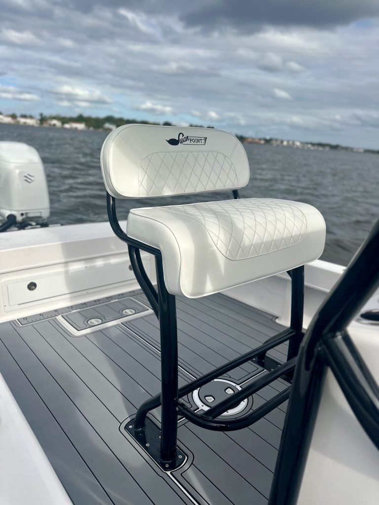 - Standard aluminum leaning post w/ 4 rod holders, grab bar, backrest and seat cushion