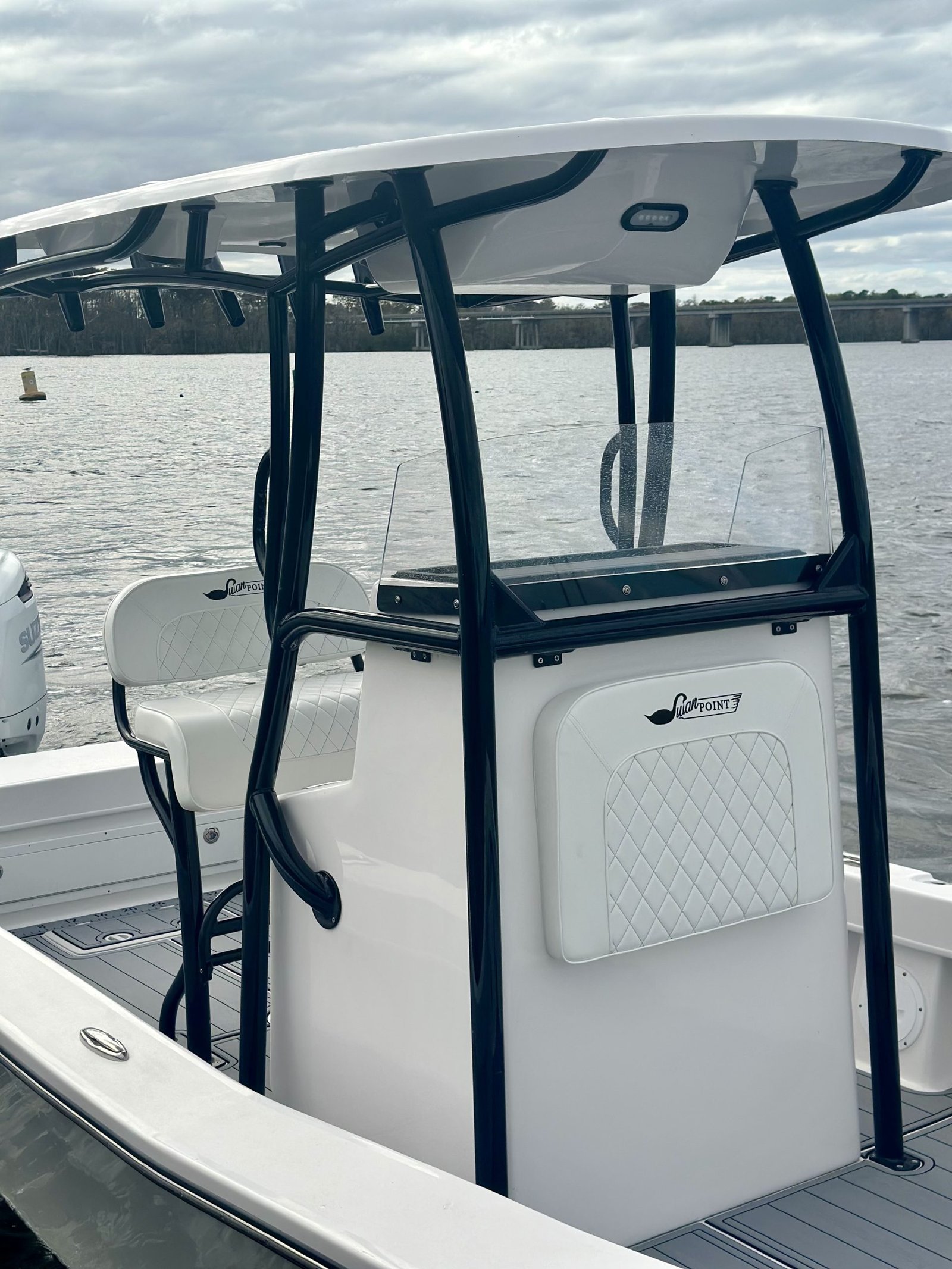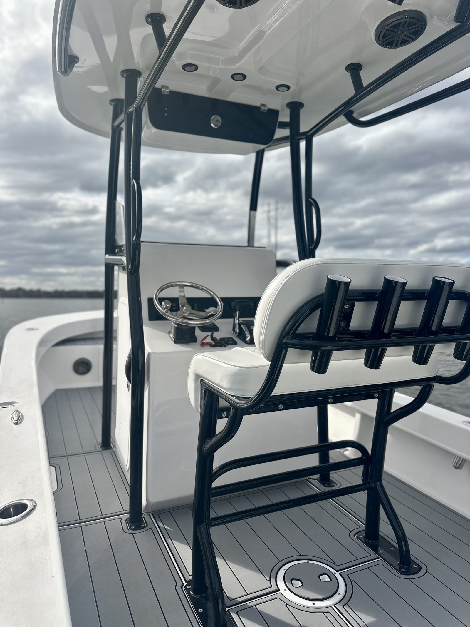 - Standard aluminum leaning post w/ 4 rod holders, grab bar, backrest and seat cushion